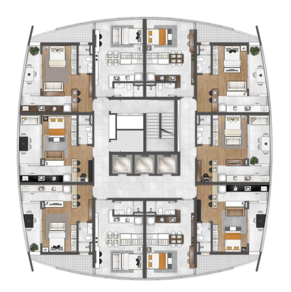 Os apartamentos tipo estúdio do Hélios Residencial são versáteis, adaptados às necessidades de funcionalidades e espaço sem abrir mão do conforto.