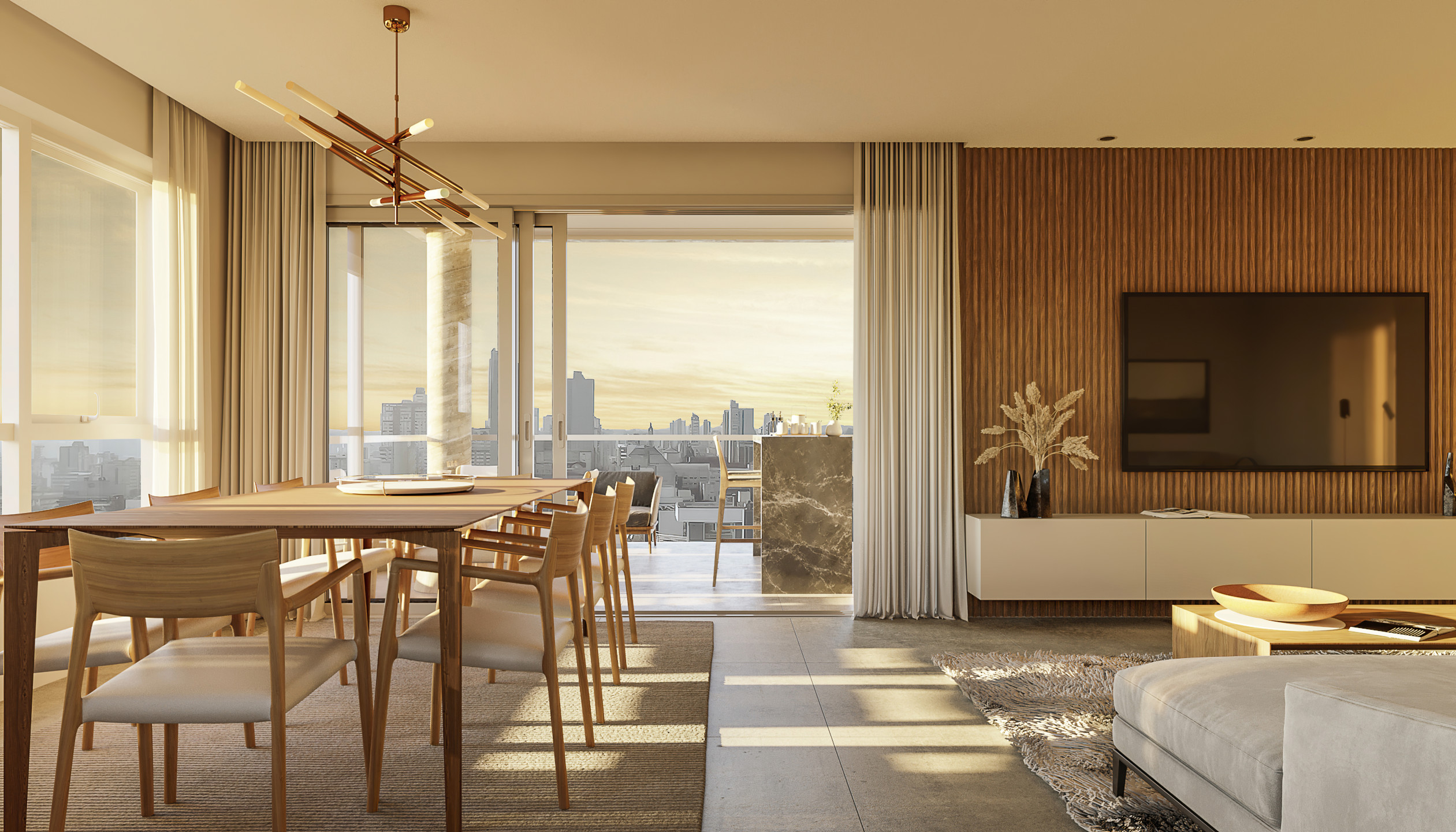 Áreas de uso comum mobiliadas e decoradas.
