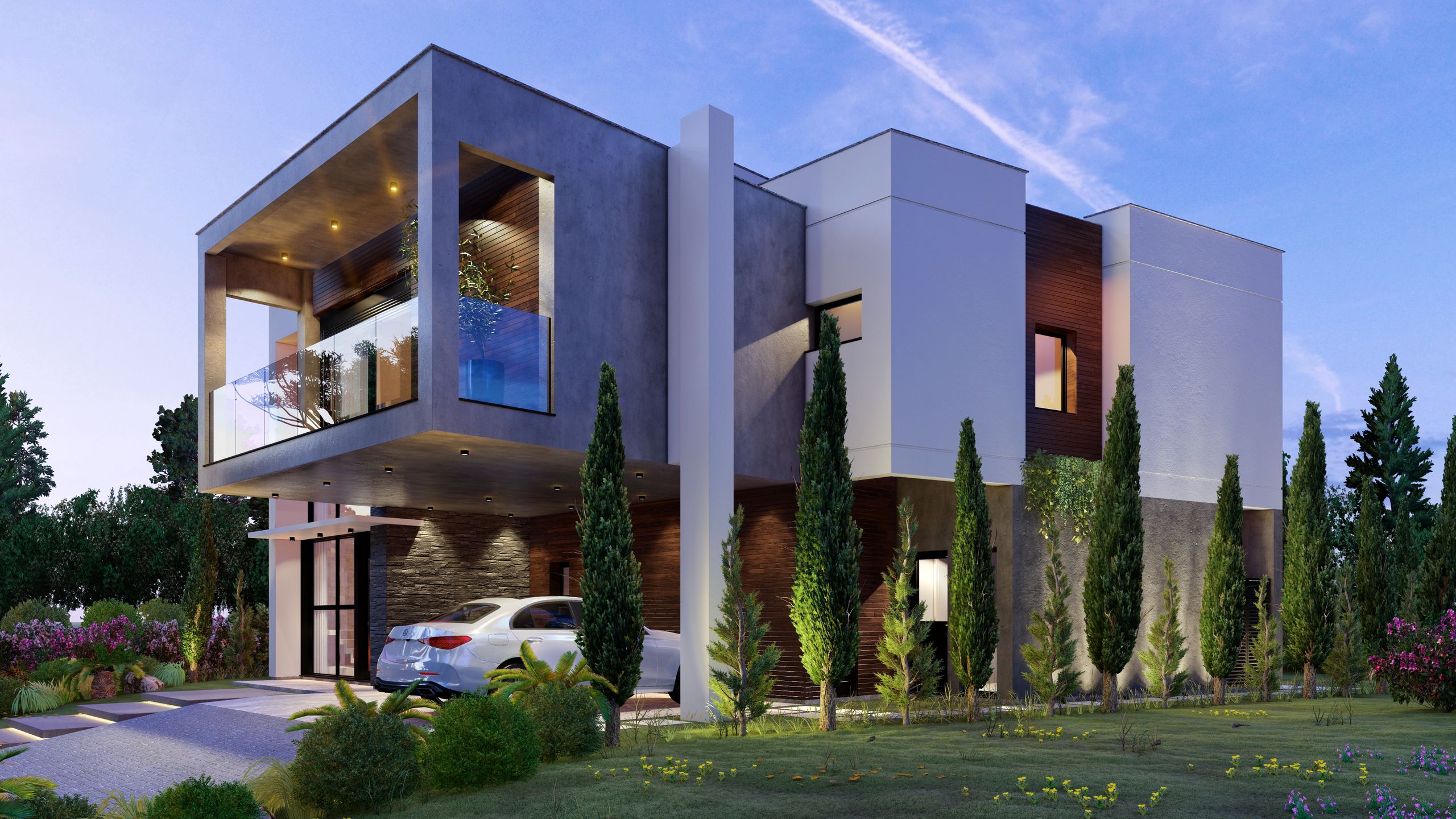 - Acabamentos premium esquadrias alemãs, paredes duplas para isolamento térmico e acústico, revestimentos em pedra natural e madeira.