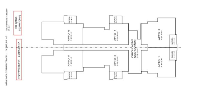 ANTEPROJETO O terreno possui um estudo para construir 60(sessenta) apartamentos de 2(dois) dormitórios, com aproximadamente 61m de área privativa, totalizando 3.259,20m de área construída.